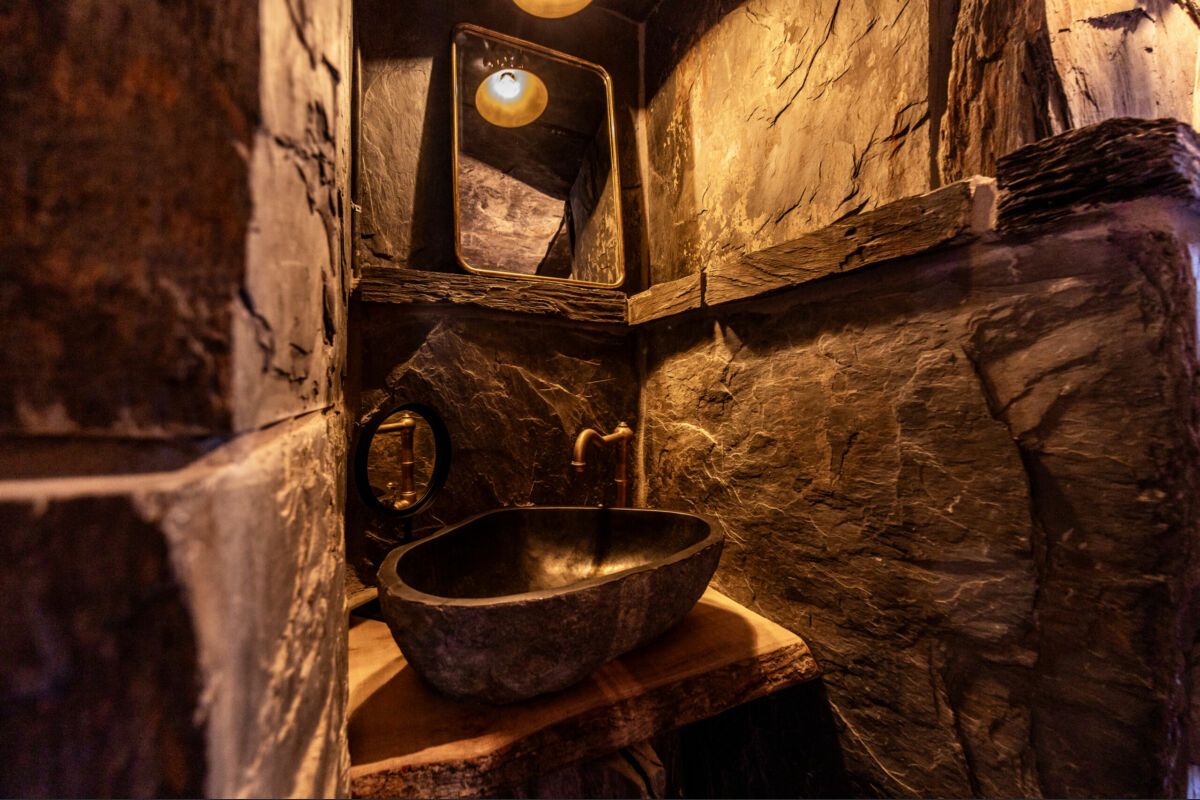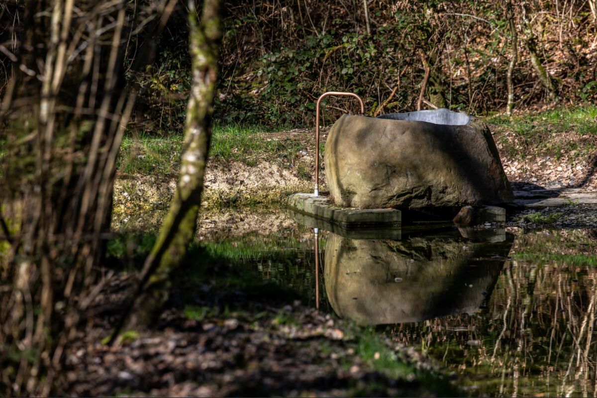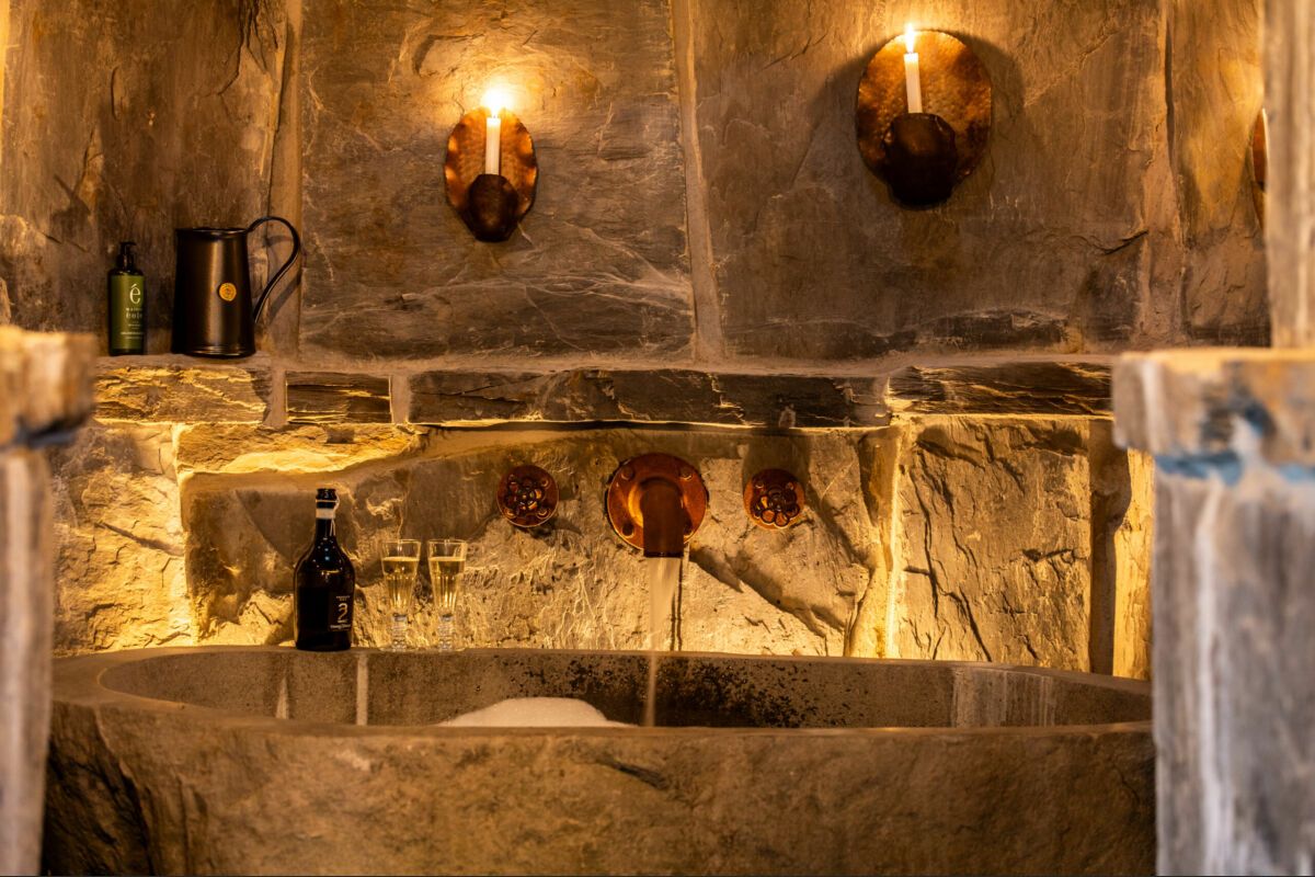 Buiten kunt u ten slotte genieten van een tijdloos moment in een stenen bad dat in het midden van de vijver is geplaatst.